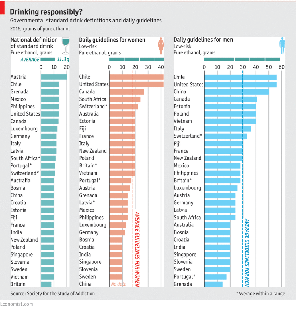 The staggering variances in alcohol guidelines across the world August 24, 2016 by timbatchelder, posted in Knowledge Management How much is too much? Source: Daily chart: The staggering variances in alcohol guidelines acrosh the world | The Economist Rate this:Share this: Email a link to a friend (Opens in new window) Email Share on Tumblr (Opens in new window) Tumblr Print (Opens in new window) Print Share on Facebook (Opens in new window) Facebook Share on LinkedIn (Opens in new window) LinkedIn Share on X (Opens in new window) X Share on Pinterest (Opens in new window) Pinterest Share on Threads (Opens in new window) Threads Share on Mastodon (Opens in new window) Mastodon Share on Nextdoor (Opens in new window) Nextdoor Share on X (Opens in new window) X Share on Bluesky (Opens in new window) Bluesky Like Loading... Related